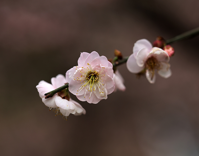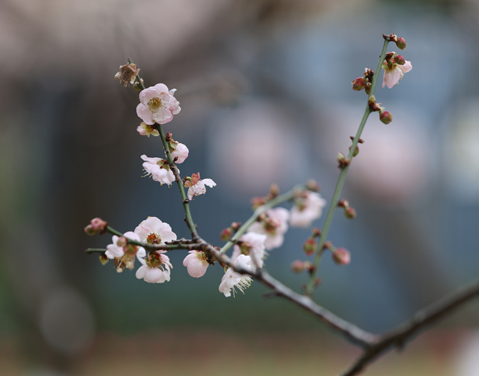 惊蛰后的第三日,南京城飘着细若游丝的雨。我撑着油纸伞拐进梅花山时,晨雾正从赭红色的宫墙下漫上来,裹着若有若无的冷香 —— 是了,这是绿萼梅特有的清冽,像刚拆开的陈年老茶,带着雪水浸润过的凛冽。